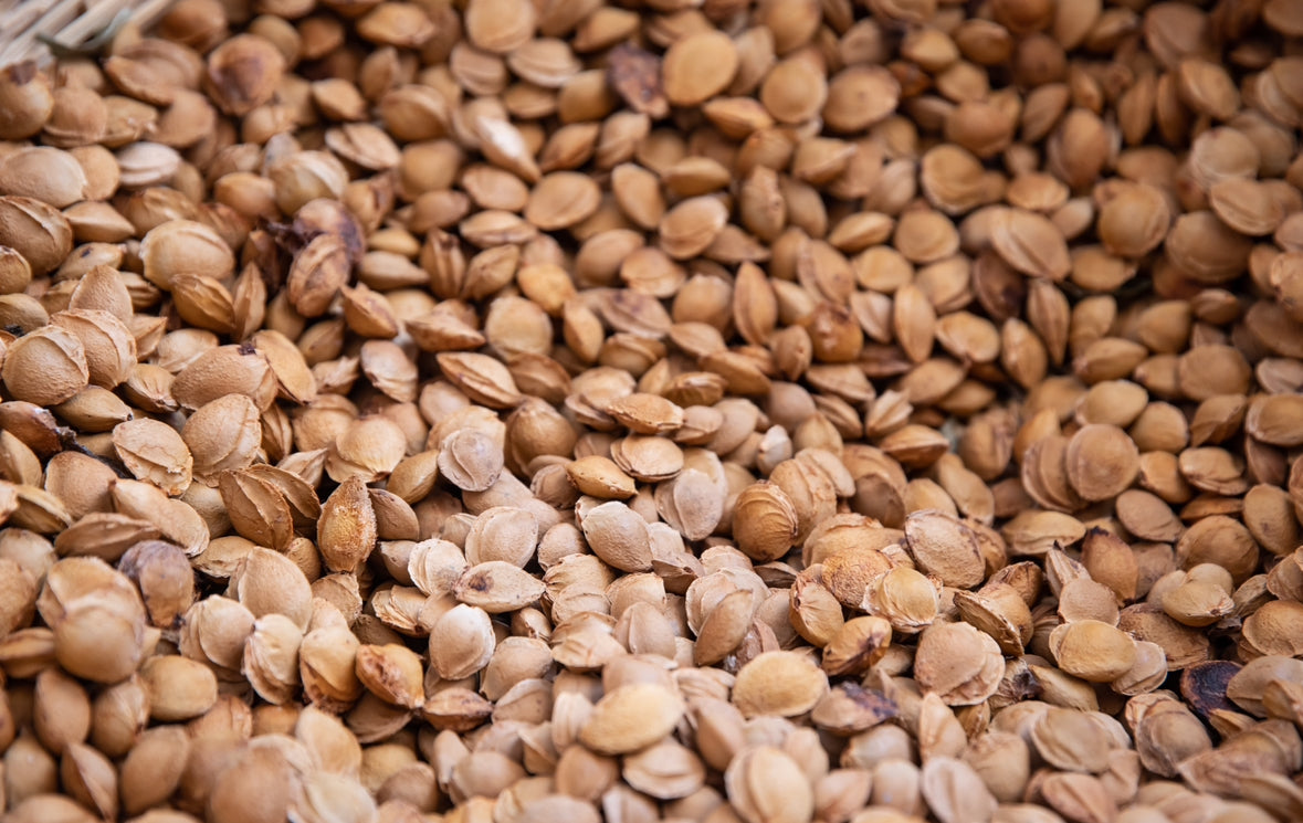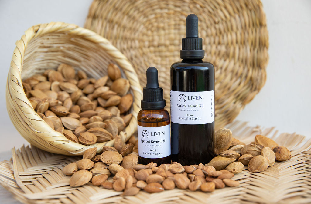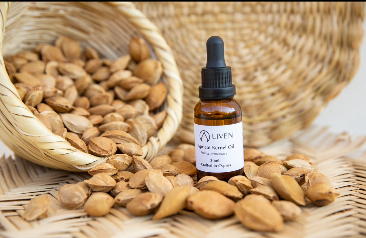 Our Apricot Kernel oil was extracted from Cypriot apricots. The apricot kernels were sourced from a jam and spoon sweet factory in Agros. After sorting the kernels from the shells by hand, we cold-pressed them.
