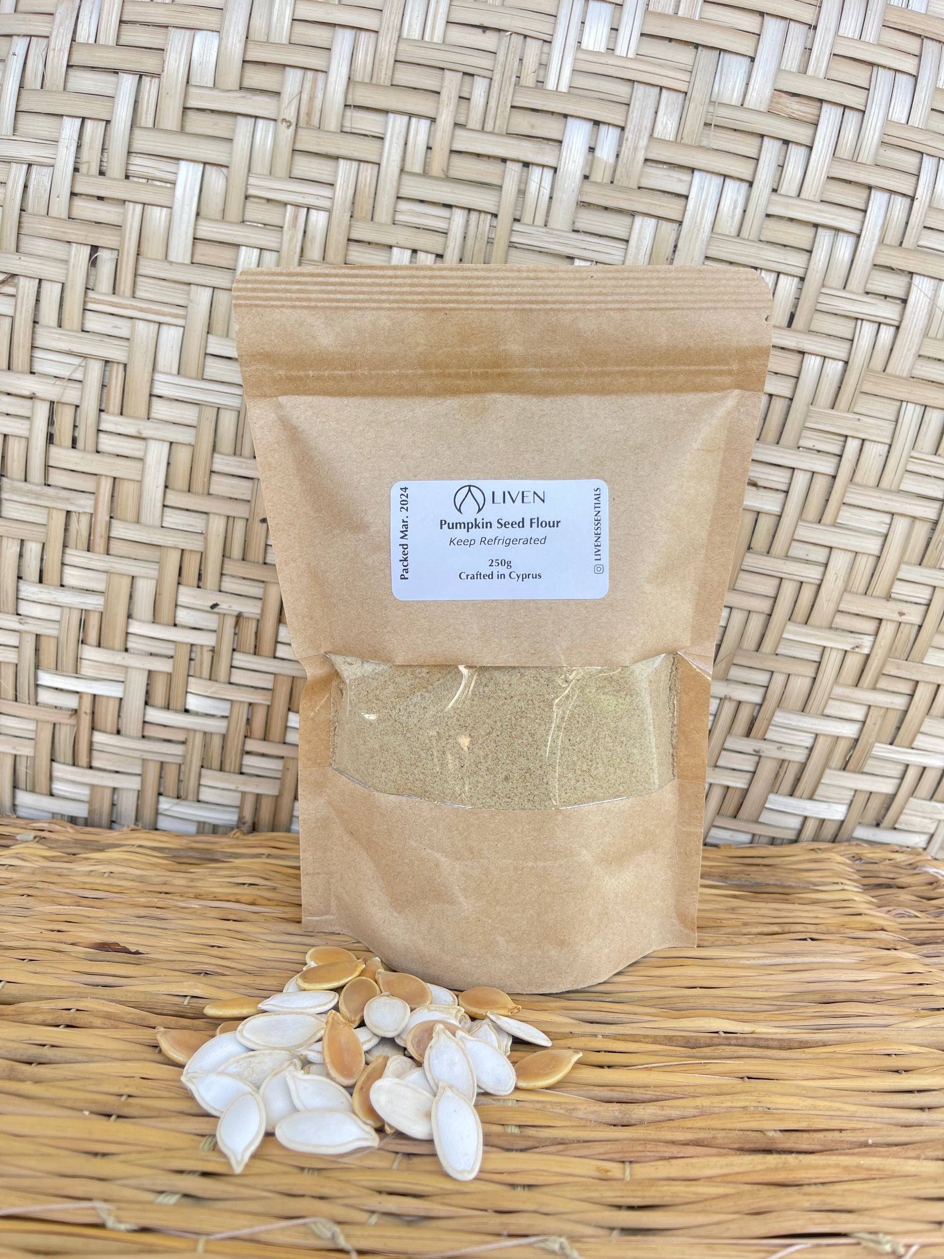 Our pumpkin seed flour was produced in April 2025. The pumpkin seeds were sourced from a local jam producer.