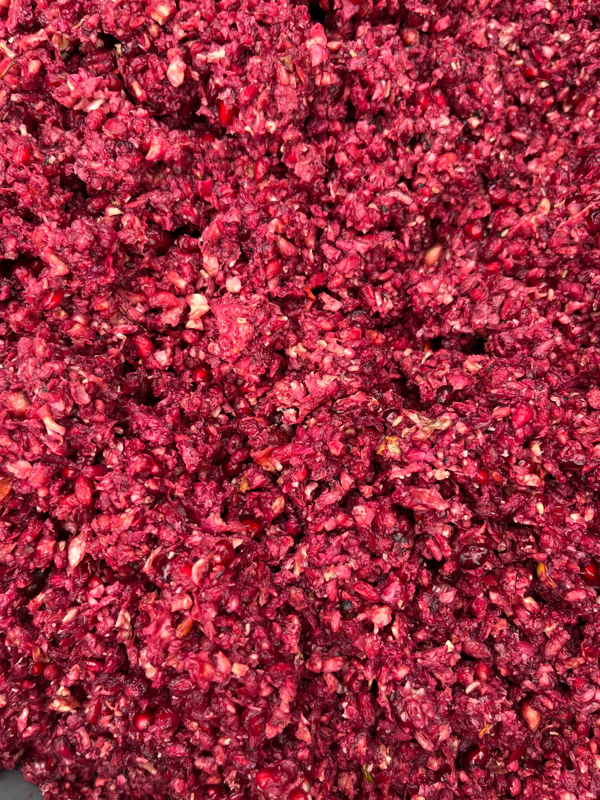 Our Pomegranate Seed Oil (Punica granatum) is pressed from pomegranate seeds grown in a nearby village, after the juice is extracted to make pomegranate vinegar. We take the seeds and put them through a multi-step process to wash, clean and dry them before they are ready for pressing. Pomegranate seed oil has an extremely low yield, so you can imagine how many pomegranates it takes to make just one small bottle of oil! We press the seeds in our expeller at a temperature not exceeding 40 degrees Celsius, after which we double-filter it before bottling.