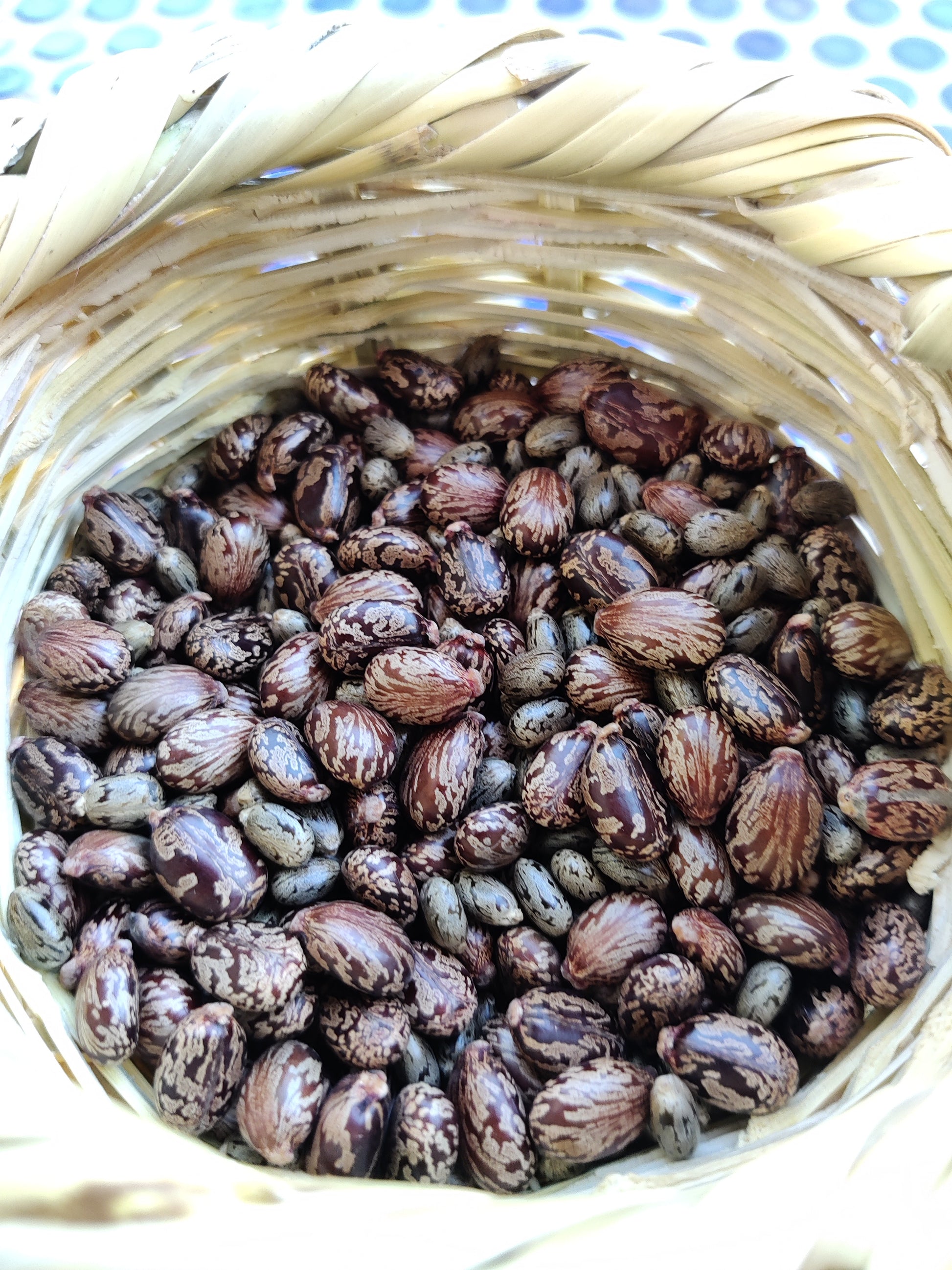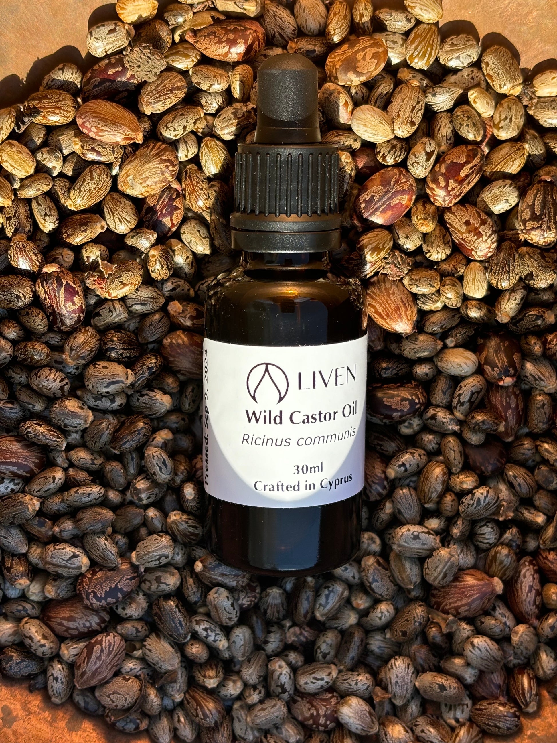 Castor plants grow very well on the banks of rivers and lakes. During summer and fall we collect the ripe castor seeds from the coastal areas of Cyprus. We separate the seeds by hand. Then, in small batches we cold-press them and slowly filter the oil without using heat or chemicals.